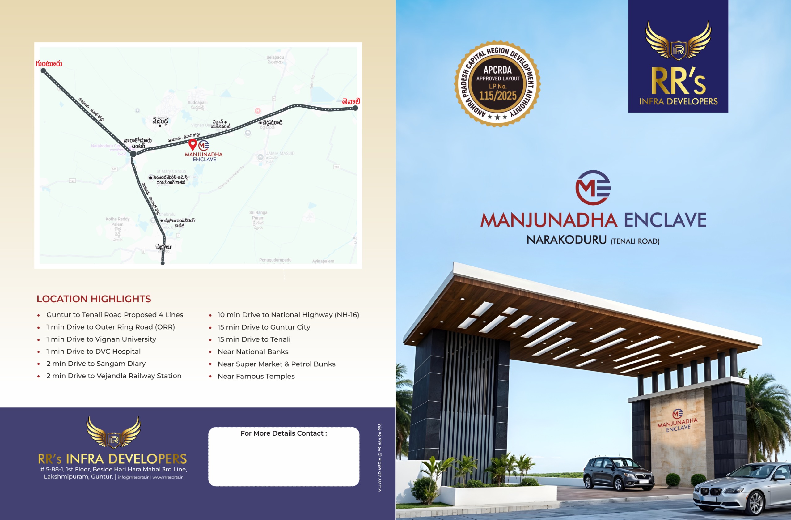 Explore this verified Amaravati plot listing with APCRDA plot code CRDA Approved Venture, located in Narakoduru Tenali Road, East Facing facing, 200 sq.yd. APE also shows nearby developments, connectivity, landmark context, and locality intelligence to help buyers evaluate the property with more confidence.